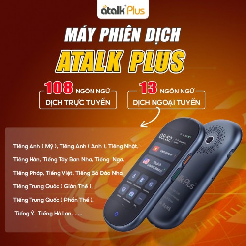 ATalk Plus là máy phiên dịch cao cấp hỗ trợ 108 ngôn ngữ, mang đến khả năng giao tiếp toàn diện và không giới hạn biên giới. Với công nghệ AI đột phá và thuật toán thông minh, ATalk Plus có thể xử lý và dịch nhanh – chính xác giữa nhiều ngôn ngữ trong thời gian thực. Bên cạnh đó, ATalk Plus còn hỗ trợ dịch ngoại tuyến tiếng Việt ngay cả khi không có kết nối mạng, giúp bạn dễ dàng giao tiếp và tra cứu ngôn ngữ mọi lúc, mọi nơi – kể cả trong môi trường không có Wi-Fi hoặc dữ liệu di động. Nhờ hiệu năng mạnh mẽ kết hợp giao diện thân thiện, ATalk Plus là người bạn đồng hành lý tưởng cho công việc, du lịch, học tập và giao tiếp quốc tế một cách thuận tiện và chuyên nghiệp.