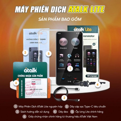 Máy Phiên Dịch . Com - Nhà Phân Phối Máy Dịch Ngôn Ngữ Số 1 Đông Nam Á tự hào là đơn vị uy tín hàng đầu trong việc cung cấp máy chuyển đổi ngôn ngữ ATalk Lite. Với nhiều năm kinh nghiệm trong lĩnh vực thiết bị phiên dịch thông minh, chúng tôi cam kết mang đến cho quý khách hàng những sản phẩm chính hãng chất lượng cao, đi kèm chế độ bảo hành tận tâm cùng nhiều ưu đãi hấp dẫn.
